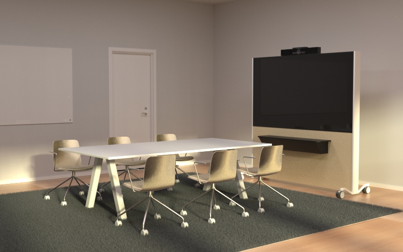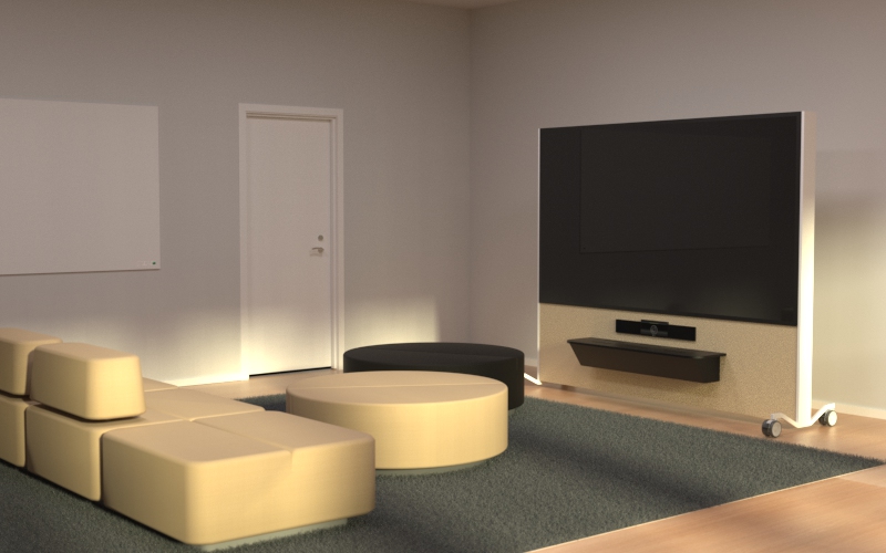 På loungedesignen är kameran alltid monterad under skärmen. Det innebär att om skärmen är tillräckligt stor så kommer kameralinsens centrum komma på en höjd över golvet på mindre än 900mm vilket inte passar i vanliga mötesrum. Connectohyllan är monterad under kameran på en höjd som är under ett vanligt konferensbord. Om du sitter i soffor eller fåtöljer däremot så kan det vara helt perfekt!